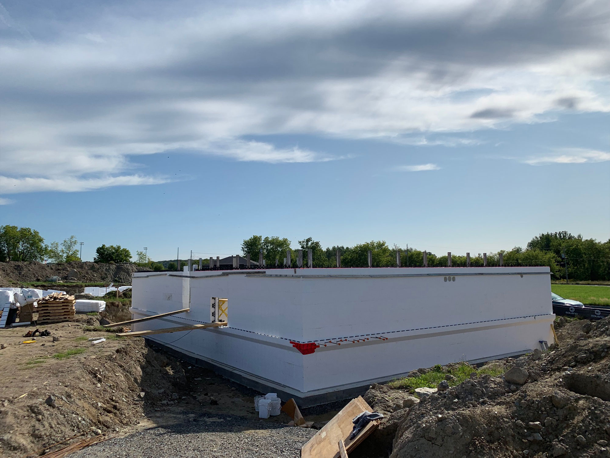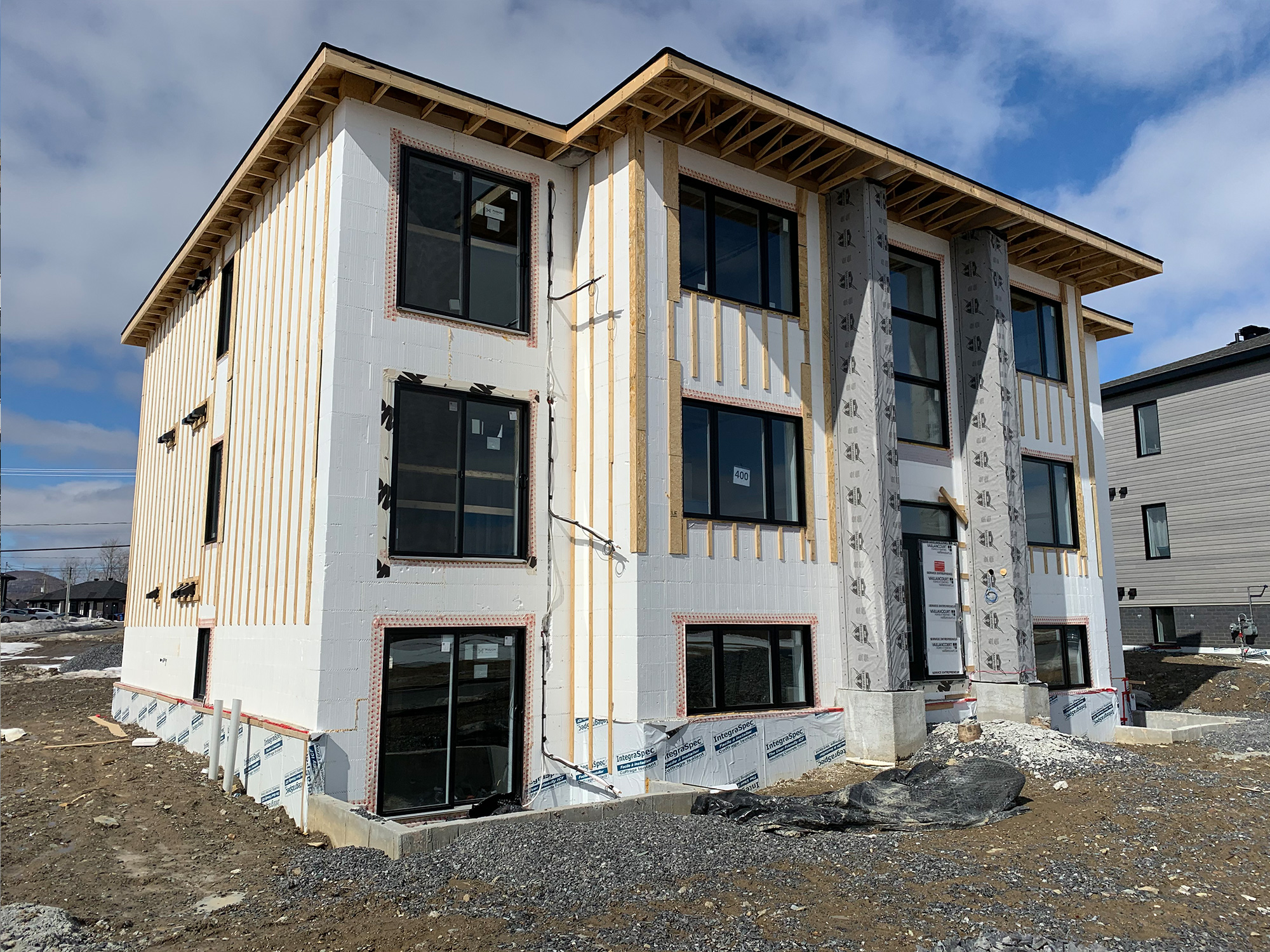Notre projet multilogements 100% en coffrage isolant totalisera 48 portes. Il est constitué de 4 immeubles de 6 logements et 2 immeubles de 12 logements. Entièrement conçu en coffrage isolant IntegraSpec, le promoteur cherchait à avoir des logements offrant un maximum de confort et d'insonorisation.
