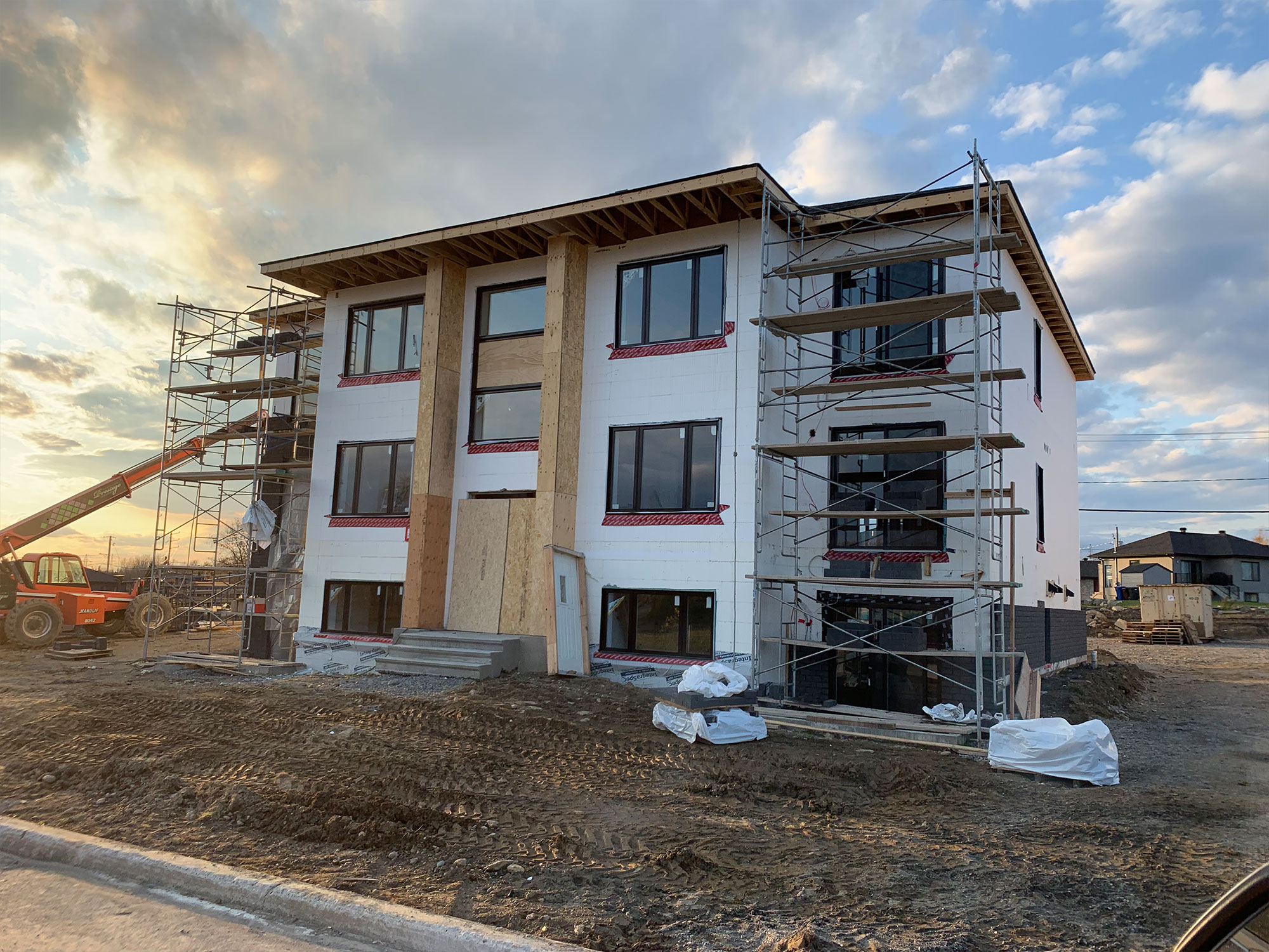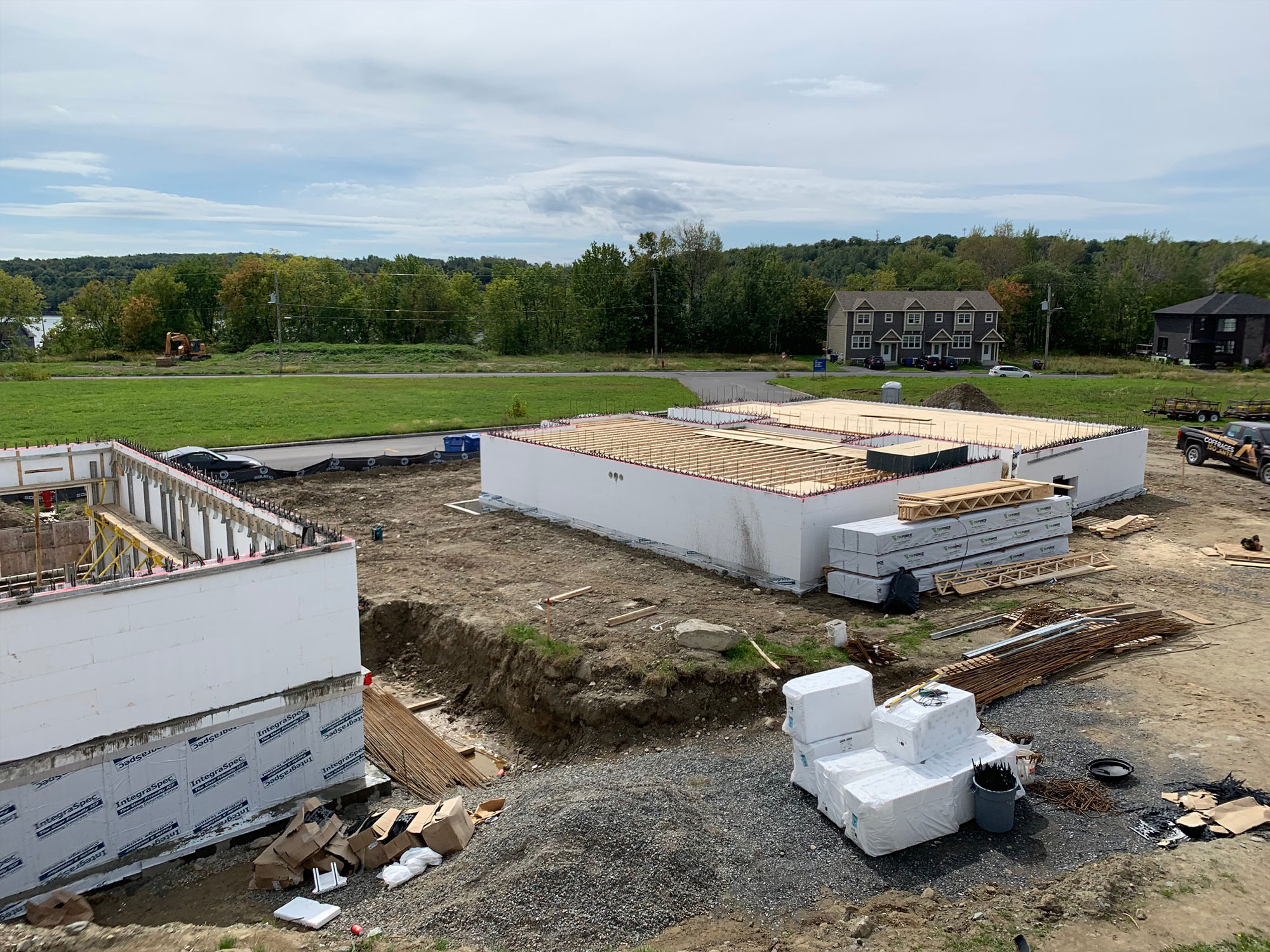 Coffrage isolant à Waterloo construction résidentielle logements de style condo haut de gamme. Ce projet de construction multilogements en coffrage isolant est situé à quelques minutes de Bromont et est accessible par l'autoroute 10. Waterloo est une ville charmante par son environnement verdoyant, son lac naviguable et sa riche architecture.